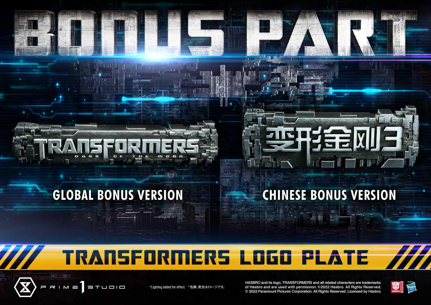 And for the Bonus Versions of this statue, we are offering Bonus Transformers Logo Plates to display with your Sideswipe! The Global Bonus Version features the Transformers logo in English. And for the Chinese Bonus Version, we are including the Chinese version of the Transformers Logo Plate to display with your Sideswipe!