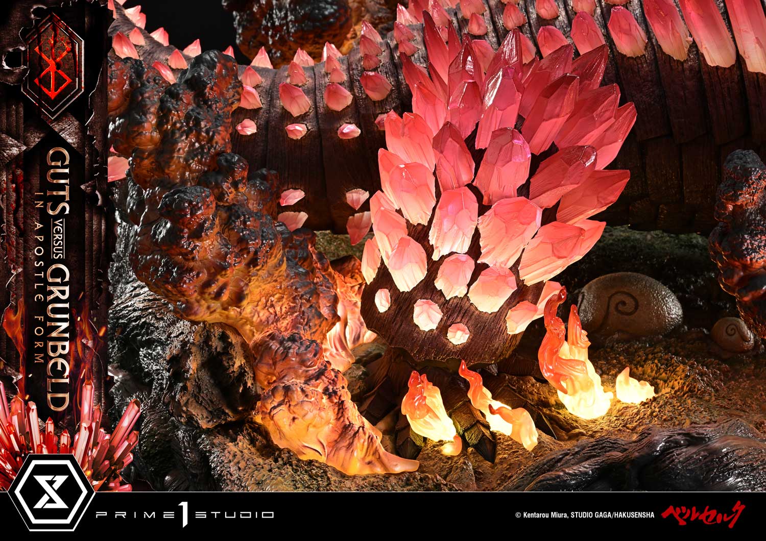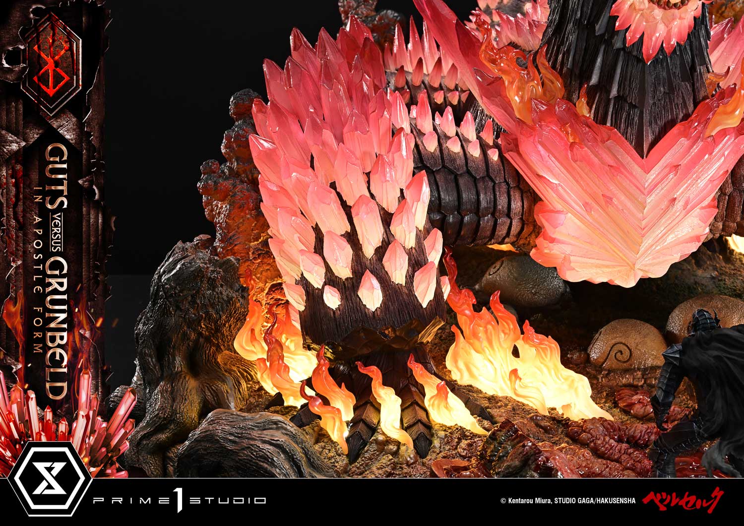 Encased in the cursed armor, Guts faces Grunbeld in his true Apostle form. The fierce battle from Volume 27 of "Berserk" takes shape within the Ultimate Diorama Masterline.