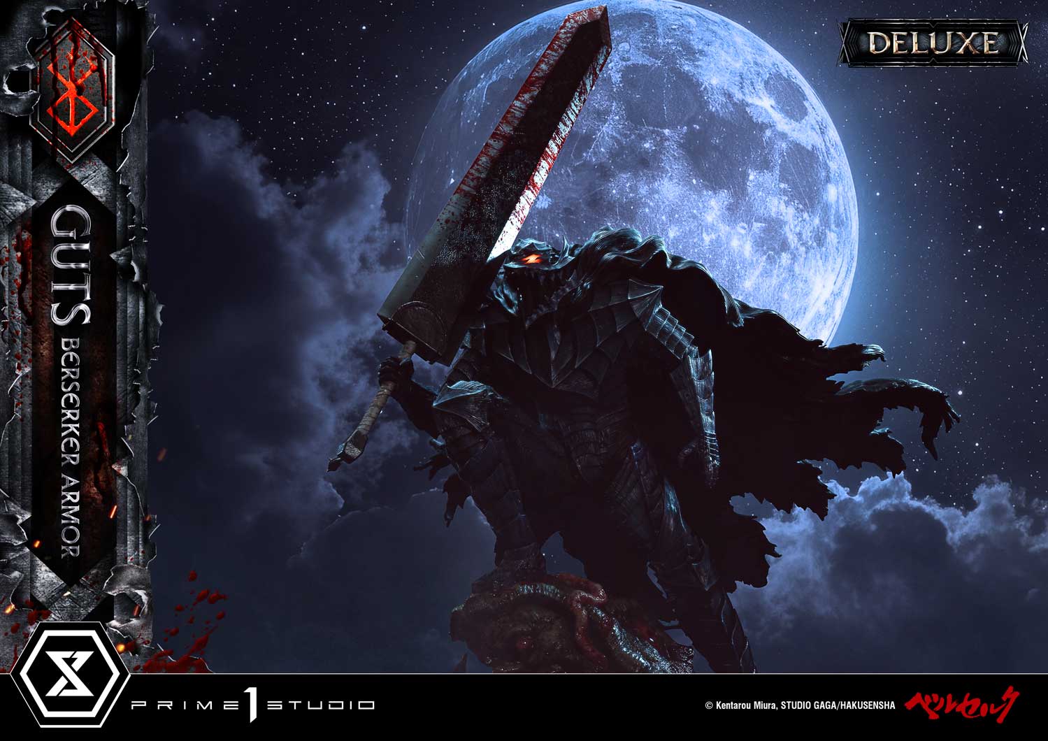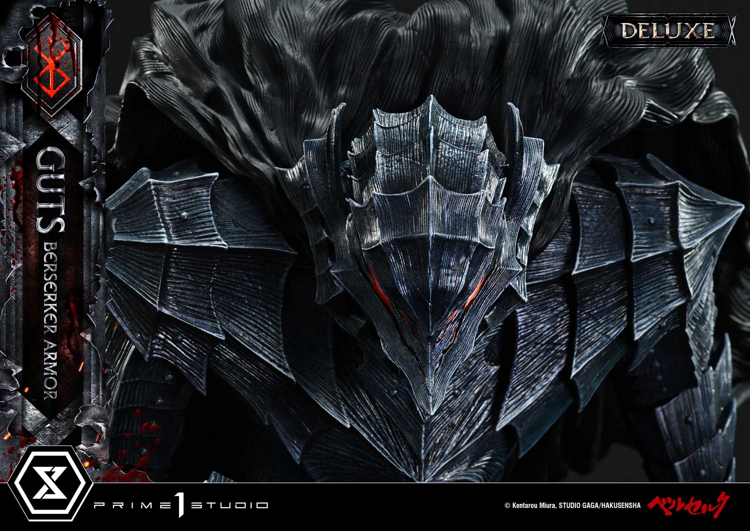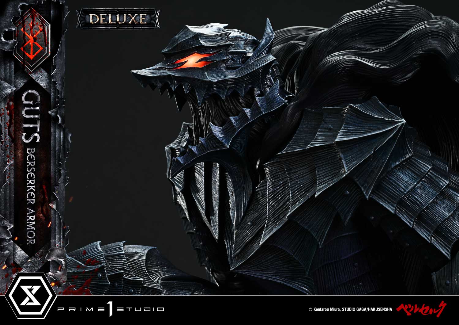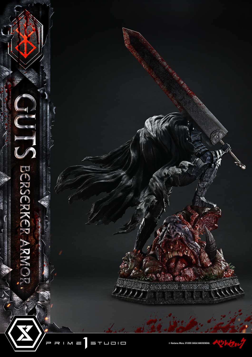 The Berserker’s first clash with the Great Flame Dragon Knight—depicted in volumes 26 and 27 of the manga "Berserk"—is brought to life in the Ultimate Premium Masterline, capturing the moment Guts dons the Berserker Armor for the very first time.