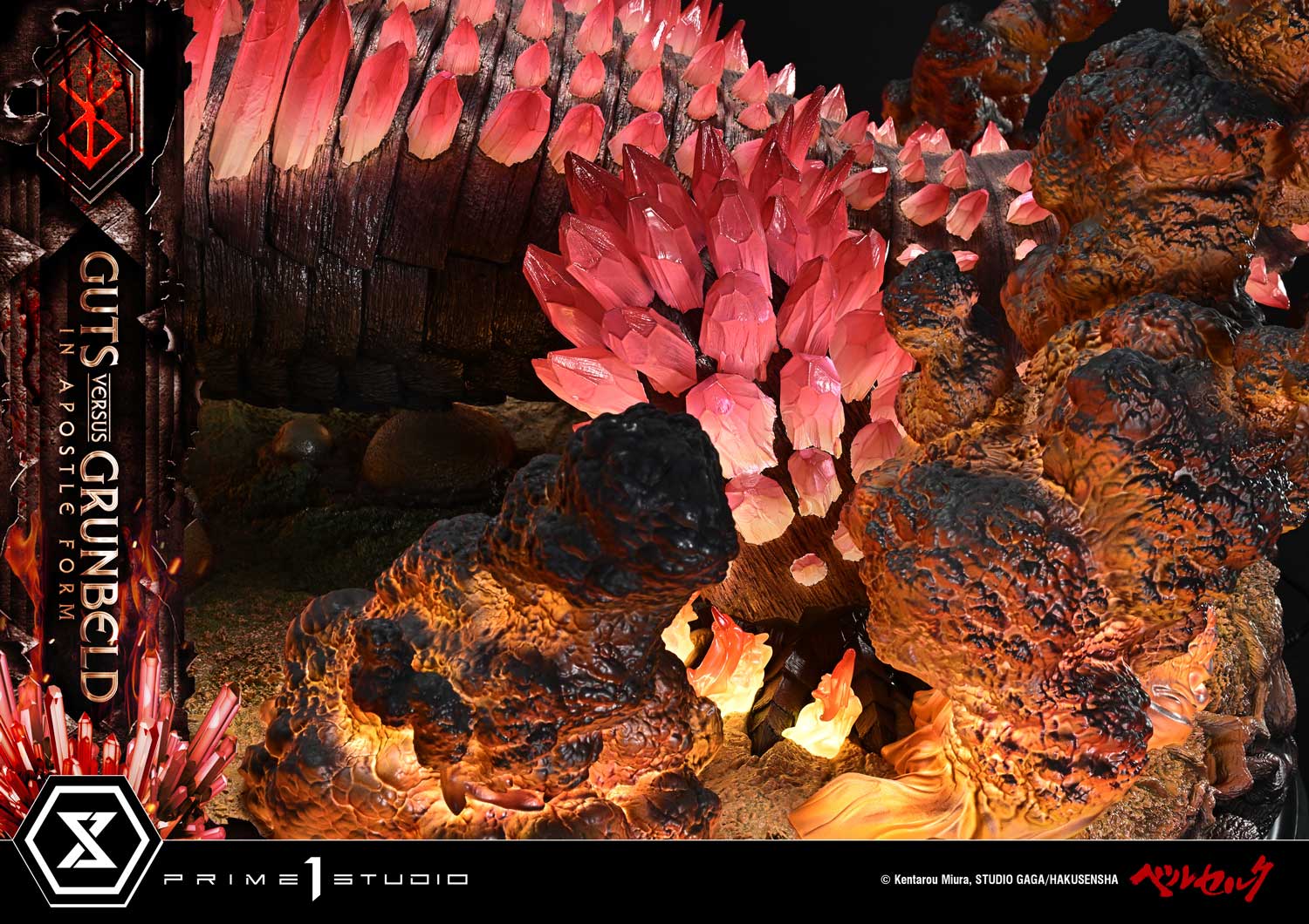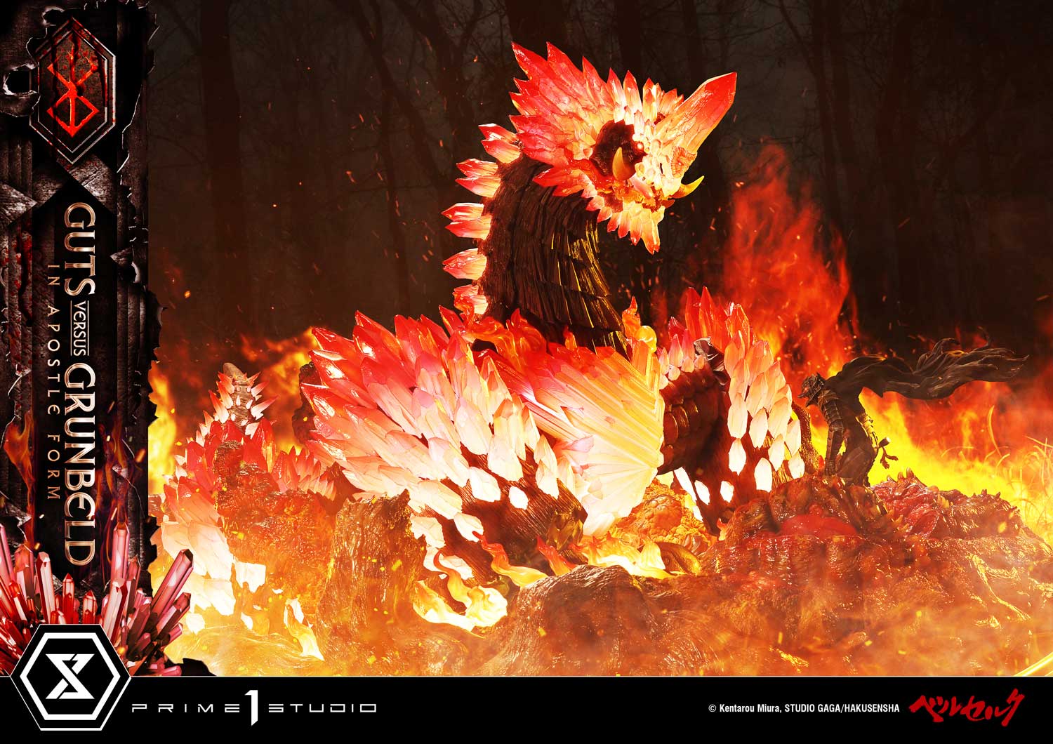 Encased in the cursed armor, Guts faces Grunbeld in his true Apostle form. The fierce battle from Volume 27 of "Berserk" takes shape within the Ultimate Diorama Masterline.